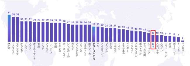 41カ国・地域すべてで、純雇用予測をプラスと回答しています。日本は、世界比較で下位の雇用意欲となりました。