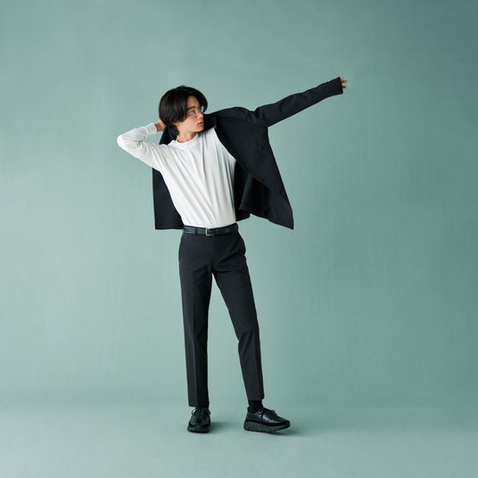 また、生地の表面にはシボ感があり、オーソドックスなセットアップとは異なる、独自の風合いを演出。服装規定が少ない職場でのおしゃれな一着として活躍します。