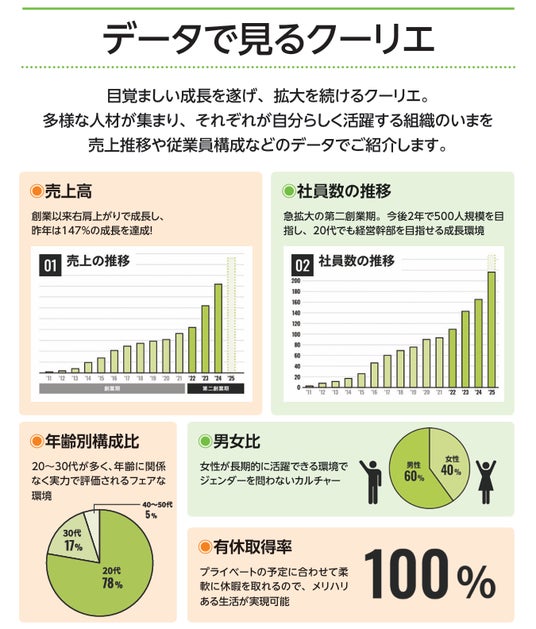 クーリエの成長を支えているのは、事業成長とともに社員一人ひとりが成長できる環境づくりです。経営方針や人材育成の考え方、スキル習得を支える仕組み、実際の働き方まで、多様な取り組みが紹介されています。