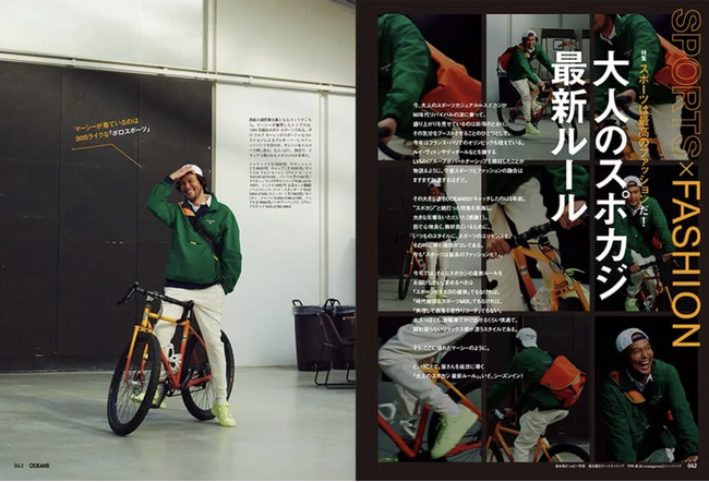 その「90年代」は、言うまでもなく今のトレンドキーワードのひとつ。そんなリバイバルの気分と、パリ五輪の年として盛り上がるスポーツなムード。2つのビッグウェーブに乗るため、今月のオーシャンズは「スポカジ」にフォーカス。