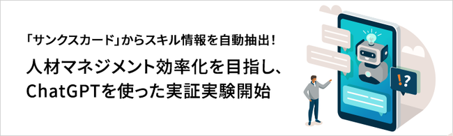 この実証実験では、ChatGPTに、「サンクスカード」の内容分析、及び、スキル・得意分野の自動抽出を実行させ、企業の人材マネジメントシーンでの活用可否を検証することを目的としています。本技術を確立できれば、従業員のリアルな言葉で書かれた「サンクスカード」がやり取りされるだけで、従業員のスキルや得意分野が可視化され、企業の人材マネジメントシーンにおいて、低コストで従業員の強みを把握できるようになるだろうと考えています。