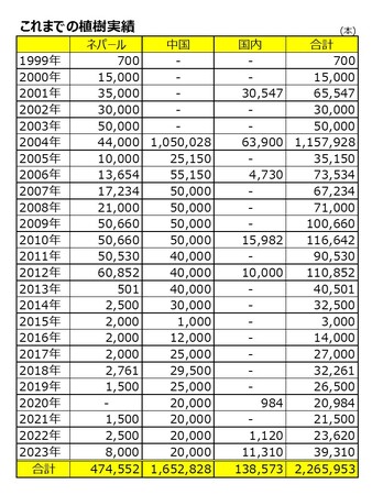 これまでに国内外合わせて226万本を超える木を植えてきました。