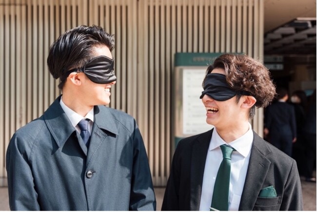 入社式当日は、新卒社員11名を式会場までリムジン送迎するサプライズから始まります。何も知らされていない状態の新入社員は、到着早々目隠しをされ、会場であるプラネタリウムまで移動。合図とともに目隠しを外し、桜の舞う迫力あるマッピングに驚いた様子でした。