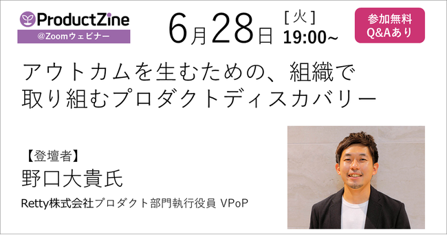 本セミナーでは、Retty株式会社 プロダクト部門執行役員 VPoPの野口大貴氏に、顧客に提供する価値の確実性や再現性を高める取り組み「プロダクトディスカバリー」をテーマにお話しいただきます。