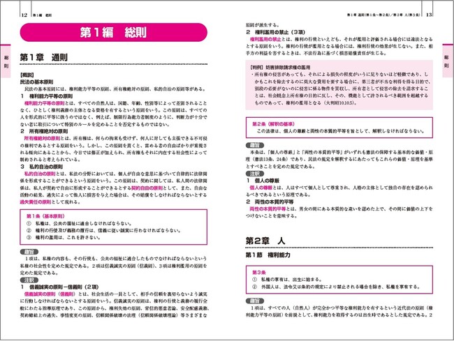 各条文の文言の解説や判例・学説の争点、要件・効果などを記載しています。