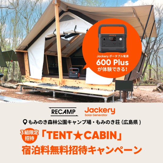 Jackery ポータブル電源 600 Plus 付き「TENT★CABIN」宿泊料無料招待キャンペーン
