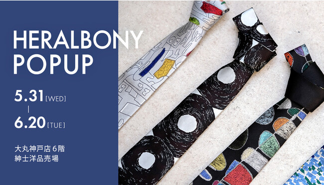 株式会社ヘラルボニー(以下、ヘラルボニー)が運営するアートライフスタイルブランド「HERALBONY」は、5月31日(水)から6月20日(火)までの21日間、大丸神戸店(神戸市中央区)にPOPUP出店いたします。店頭にはHERALBONYのシグネチャーアイテムの銀座田屋のアートネクタイやオリジナル商品のハンカチなど、父の日のプレゼントにもおすすめなギフトアイテムが店頭に並びます。会期中、6月10日(土)にはヘラルボニー代表の松田崇弥によるトークショー「HERALBONY アートクルーズ」を開催いたします。