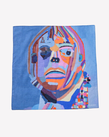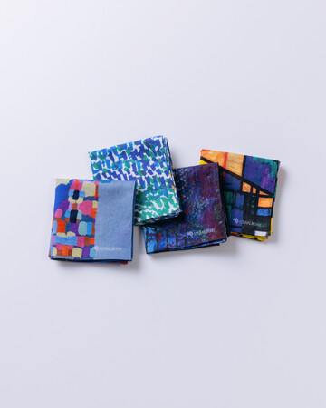 53cm×53cmのアートハンカチはファッションアイテムとしても取り入れやすく、ストーリーが込められたアートは贈り物にもおすすめです。コットン100%。