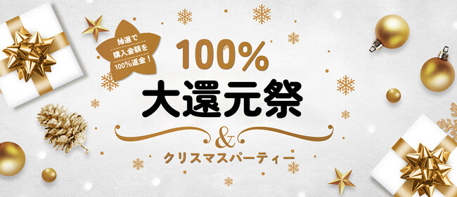 日頃から努力を積み重ねるあなたのために、100%大還元祭を行います。今回のイベントで一番早くご注文された50名様の中から、ランダム抽選で5名様に購入金額の100%を返金します。早い者勝ちですので、お早めに!