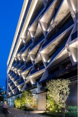 外観デザインは、株式会社LIV建築計画研究所を採用。「麻の葉文様」をモチーフとして採用し、見る位置・角度によって見え方を大きく変化させる立体的なデザインとしました。また、バルコニーに設置されている照明によって昼夜の表情に差をつけることで、様々な表情を魅せながら麻布の街並みに彩りを創出します。