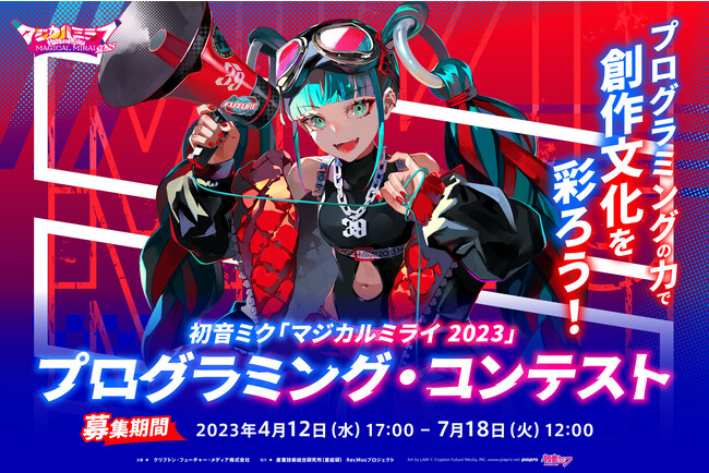 クリプトン・フューチャー・メディア株式会社(本社:北海道札幌市、代表取締役:伊藤博之、以下「クリプトン」)は、国立研究開発法人産業技術総合研究所(以下「産総研」)の協力の下、イベント『初音ミク「マジカルミライ 2023」』(以下「マジカルミライ 2023」)の一環として、プログラミング・コンテストを開催いたします。募集する作品は、本コンテストの対象楽曲にあわせて動くWebアプリケーション(リリックアプリ)です。2023年7月18日(火)正午まで募集いたしますので、プログラミングにご興味のある方は、ぜひこの機会にご参加ください。