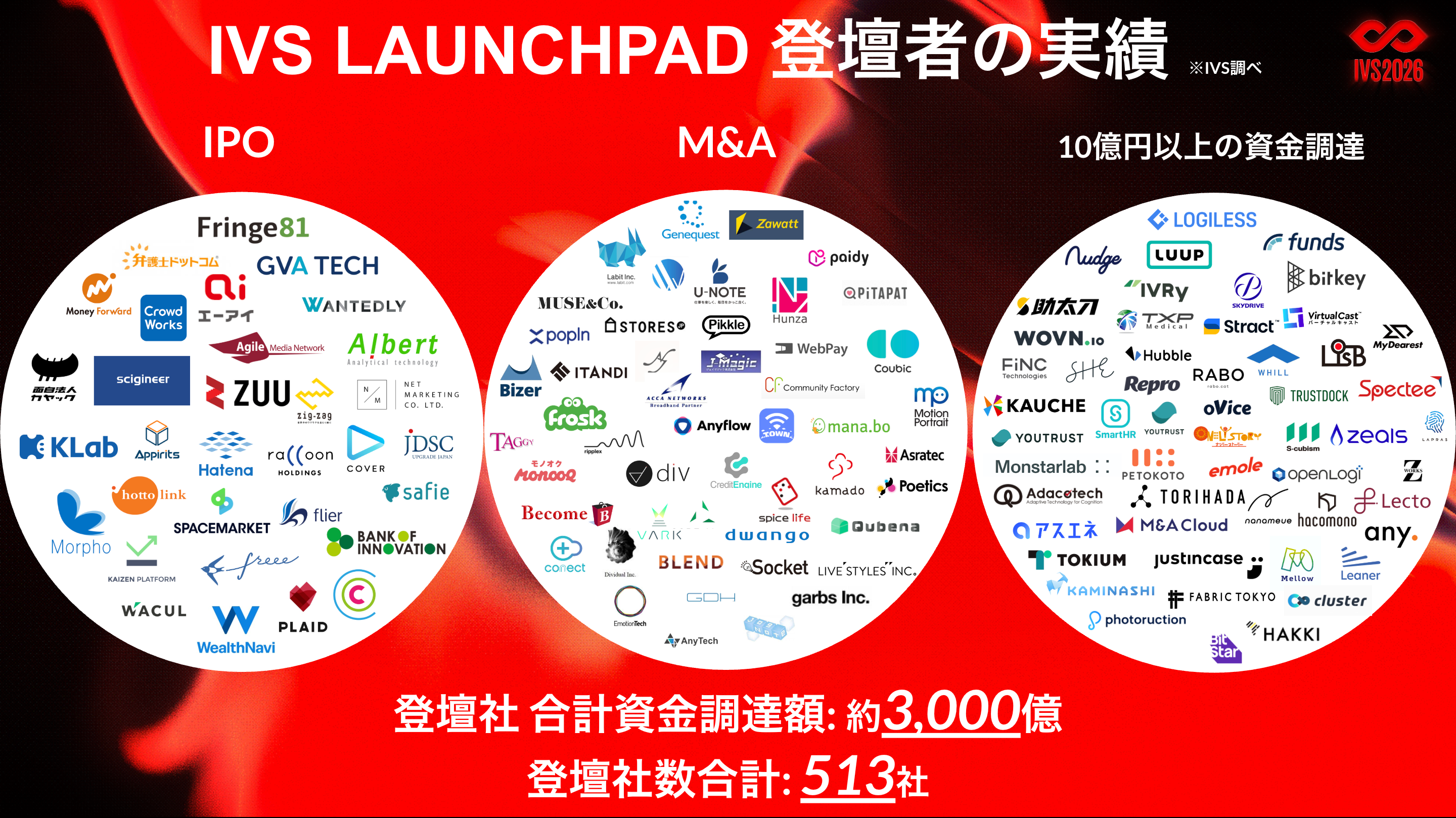 IVS LAUNCHPADは、この20年で多くの起業家が世界へ羽ばたく「発射台(ローンチパッド)」となってきました。累計5,000社以上の応募、60社以上のEXIT、100社以上の大型資金調達という実績は、日本のスタートアップエコシステムの歴史そのものと言えると思います。
