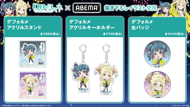 「ABEMA」オリジナル描き下ろしイラスト(デフォルメver.)グッズラインナップ