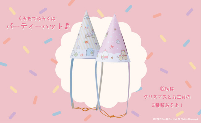 イベントシーズンにもってこいのパーティーハットが2種類。クリスマスとお正月バージョンのすみっコぐらしのイラストはレアです。がんばってつくってみてねー!