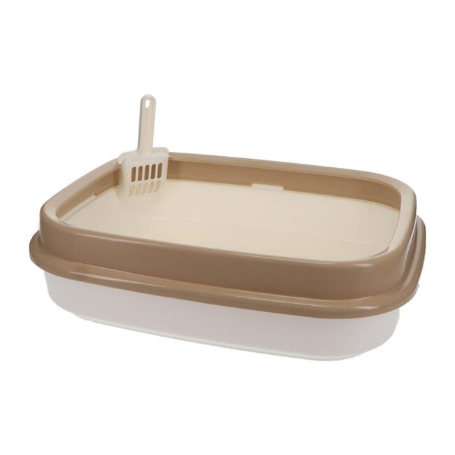固まった砂をすくえる穴あきスコップ付きの猫用トイレ。