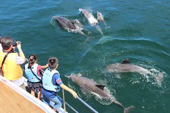 天草に生息する野生のミナミハンドウイルカに出会うことができます。