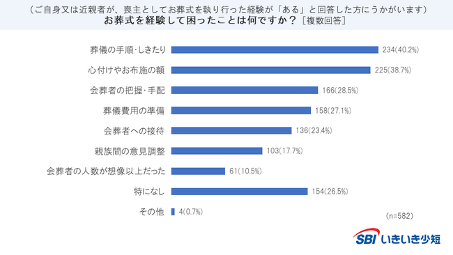 お葬式を経験して困ったこと、「葬儀の手順・しきたり(40.2%)」が第1位。
