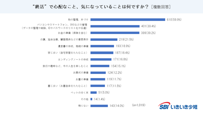 ■“終活”で心配なこと・気になっていること第1位は「物の整理・片付け(59.9%)」