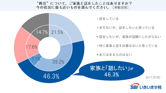 ■“終活”について「家族と話している」人は21.5%、「家族と話したい」人は46.3%。