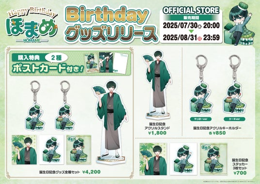 さらに、全種が揃った「誕生日記念グッズ全種セット」には、ここでしか手に入らない限定ポストカード2種の特典付き!