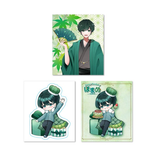 ほまめ誕生日記念描き下ろしグッズの全種セット。特典としてポストカードが2種類つきます。