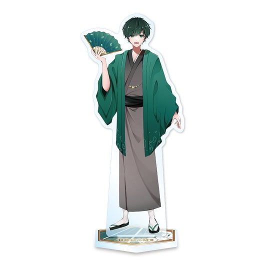 ほまめ誕生日記念の描き下ろし和風イラストを使用した全身アクリルスタンド。結構大きいです。服や扇子に豆模様があしらわれてます。