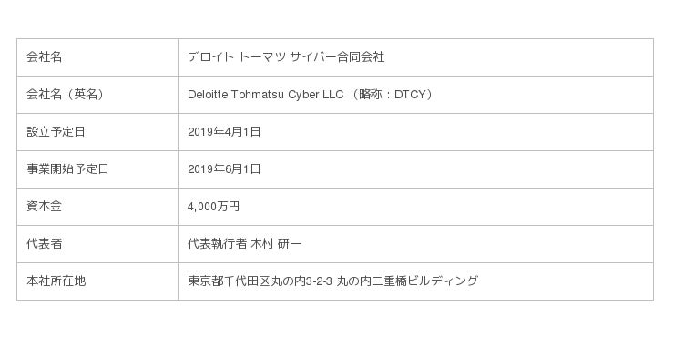 デロイト トーマツ グループは、サイバーセキュリティに関するコンサルティング等を提供する新会社、デロイト トーマツ サイバー合同会社を、2019年4月に設立することを決定しました。