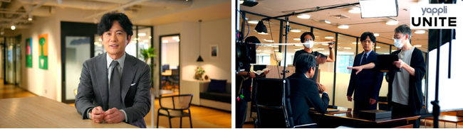 上場企業における「人的資本開示が義務化」が適応された今、企業と従業員が相互に信頼できる組織エンゲージメント構築に注目がなされています。Yappli UNITEは、それを担うソリューションで、組織エンゲージメントを向上させる様々なアクションを自社アプリで実現するサービスです。新CMには「Yappli」のCMシリーズから引き続き、優秀なサラリーマン役を演じる稲垣さんが登場します。今回のCMでは、とある企業の人的資本経営に関する課題がYappli UNITEの力で解決される様子を社長・稲垣部長・部下のやりとりでコミカルに描いています。Yappli UNITEの導入によって、稲垣部 長が驚くほど、ビジョンの浸透や、カルチャー醸成がなされ会社が変わっていく様子を表現しました。 コミカルに表現された、クールでお茶目な稲垣部長のやりとりに注目してください。