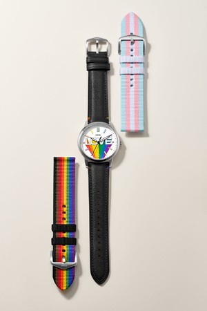 腕時計用ストラップ:トランスジェンダーフラッグとレインボーフラッグの色にインスパイアされたストラップもそれぞれ22mm幅、20mm幅で合計4型ラインアップ。リサイクル・ポリエチレン・テトラファイト(rPET)製。自分流にプライドを身につけることができます。