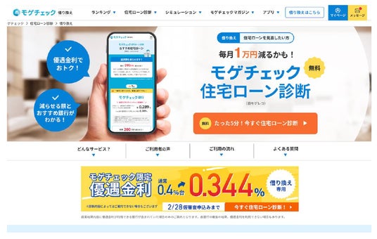 住宅ローン比較診断サービス「モゲチェック」を運営する株式会社MFS(本社:東京都千代田区、代表取締役CEO:中山田 明、以下「MFS」)は、モゲチェックの住宅ローン診断を受けたユーザーに対して、インターネットで一般公開されている年0.4%台の金利をさらに優遇した年0.344%のモゲチェック限定優遇金利(変動金利)を2024年12月2日から案内開始します。なお、借り換えユーザーが対象となります。