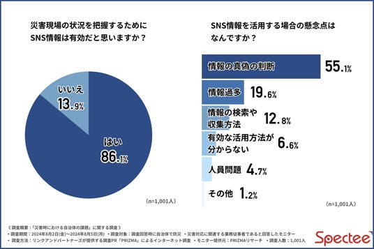 8割以上が「災害現場の状況を把握するのにSNS情報は有効」と回答する一方で、デマ情報への懸念も