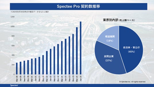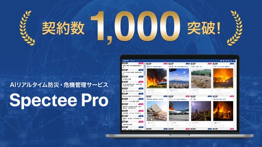 AIリアルタイム防災・危機管理サービス『Spectee Pro』は、世界で発生する災害や危機を、迅速に収集、可視化、予測することができ、災害対応や危機管理などを目的に、全国の自治体、報道機関、インフラ会社、メーカー、物流、商社などに導入いただいています。契約数は2024年7月に1000を突破しました。
