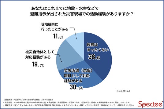 はじめに、「あなたはこれまでに地震・水害などで避難指示が出された災害現場での活動経験がありますか?」と質問したところ、