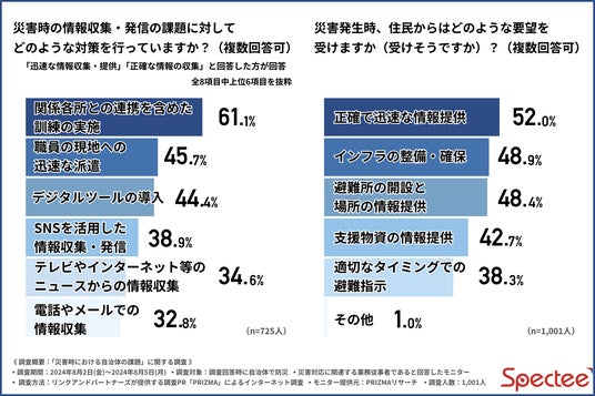 Spectee は全国の自治体や多くの民間企業にAIリアルタイム防災・危機管理サービス『Spectee Pro』を提供しており、自治体で防災・災害関連業務に従事する方々を対象に「災害時における自治体の課題」に関する調査を行いました。