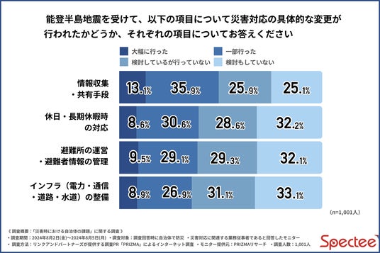 昨年7月に行った調査では、3割近くが災害発生時の初動対応への対策ができていないという回答結果になり、課題が浮き彫りになりました。前回調査から約1年が経ち、能登半島地震を受けて災害対応への意識は変わったのでしょうか。