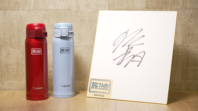 プレゼント内容:佐藤二朗のサイン入り色紙と旅チャンネルのロゴが入ったタンブラーのセット(タンブラーの色の指定はできません)