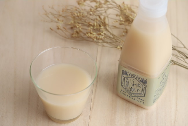船橋屋のくず餅をはじめとする関東風のくず餅は、「小麦澱粉」を発酵させて蒸し上げる【和菓子唯一の発酵食品】。近年「船橋屋のくず餅を食べるとおなかの調子が良くなる」というお客さまからの多くのお声をもとに研究を開始。小麦澱粉の発酵槽から、乳酸菌を分離・培養することに成功。「くず餅乳酸菌(R)」と名づけ、商標登録いたしました。その後乳酸菌を使った商品や飲むくず餅乳酸菌、化粧水などを開発。「くず餅乳酸菌(R)」は植物性乳酸菌であり、217年間江戸時代より生き抜いてきたくず餅独自の乳酸菌です。