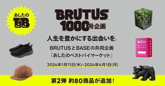 BASE株式会社(所在地:東京都港区、代表取締役CEO:鶴岡 裕太 以下 BASE)が運営するネットショップ作成サービス「BASE(ベイス)」は、株式会社マガジンハウス(本社:東京都中央区、代表取締役社長:片桐 隆雄)が発刊するカルチャー誌「BRUTUS(ブルータス)」の通巻1,000号を記念した共同企画<あしたのベストバイマーケット>の第2弾を2月22日(木)より開始します。俳優・蒼井優さんと<ミナ ペルホネン>のコラボレーションアイテムなど新たに約80点の商品が追加され、オンラインで販売開始します。また、東京と大阪にて本企画と連動したポップアップやイベントを開催します。