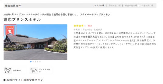 「休日いぬ部」では、楽天トラベル・Yahoo!トラベル・一休など複数の旅行予約サイトと連携し、ペットと泊まれる宿の比較・検索ができるサービスを提供しています。