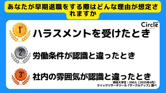 株式会社RECCOO(本社:東京都渋谷区、代表取締役:出谷 昌裕、以下、当社)が運営するZ世代に特化したクイックリサーチサービス『サークルアップ』は、最新のZ世代調査として「早期退職」に関する調査レポートを発表します。今回の調査では新入社員の早期退社やその改善策に関する意識を調査しました。なお、サークルアップを活用してZ世代の調査を行いたい場合、または調査結果を自社メディアの記事などに転載される場合は、こちらにお問い合わせください。