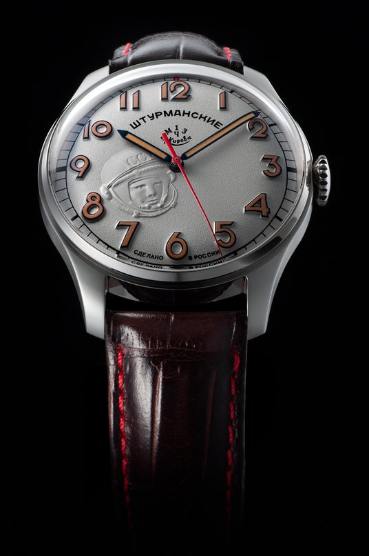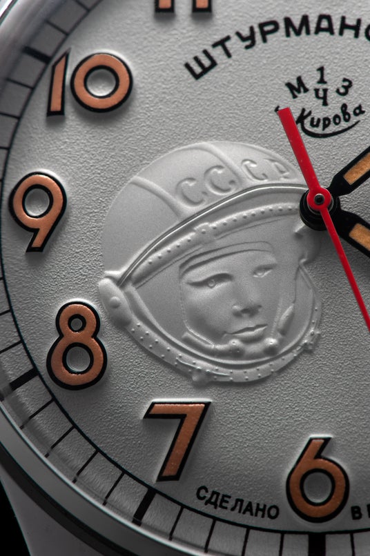 〈STURMANSKIE「シュトゥルマンスキー」〉は、1950年代にソビエト連邦で誕生した時計ブランドで、主に軍用や宇宙飛行士用の時計を製造してきました。ブランド名の「シュトゥルマンスキー」は、ロシア語で「航海士」や「航空士」を意味し、その名の通り、厳しい環境下での正確な時を刻むことを使命としています。1961年、ユーリイ・ガガーリンが史上初の有人宇宙飛行に成功した際に着用していた腕時計が、この〈シュトゥルマンスキー〉のものです。これにより、〈シュトゥルマンスキー〉は世界初の「宇宙時計」として歴史に名を刻みました。その後も、同ブランドは宇宙飛行士や軍関係者に愛用され続け、技術と信頼性の象徴としての地位を確立しています。