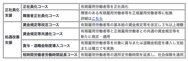 6つのコースがあり、大きく「正社員化」と「処遇改善」の取り組みに分けられます。