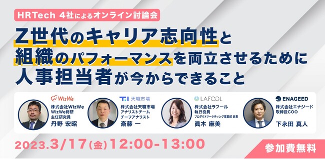 「個人が変われば、 組織が変わる」組織改善サーベイ「ラフールサーベイ」を提供するウェルビーイング/人的資本経営支援の株式会社ラフール(本社:東京都中央区、代表取締役社長:結木啓太、以下「ラフール」)は株式会社エナジード(本社:東京都新宿区、代表取締役:氏家光謙、以下「エナジード社」)と『Z世代のキャリア志向性と組織のパフォーマンスを両立させるために人事担当者が今からできること』をテーマとした共催セミナーを2023年3月17日(金)に開催します。