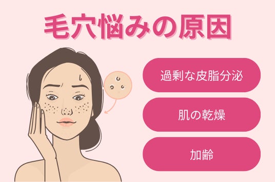 毛穴悩みの主な原因は、「過剰な皮脂分泌」「肌の乾燥」「加齢」です。
