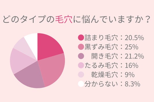 調査の結果、最も多くの方が悩んでいるのは「黒ずみ毛穴」(25%)であることが明らかになりました。