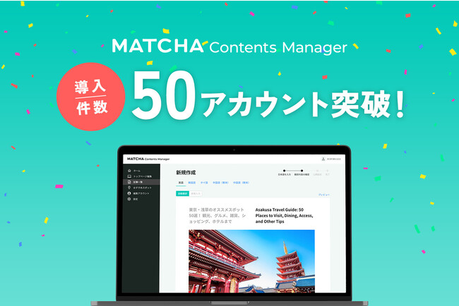 株式会社MATCHA(本社:東京都中央区、代表取締役社長:青木優)が提供する、地域の観光PRを短時間・低コストで多言語対応できる「MATCHA Contents Manager(以下MCM)」が、2023年7月時点で導入する自治体・事業が50社を突破したことをお知らせいたします。