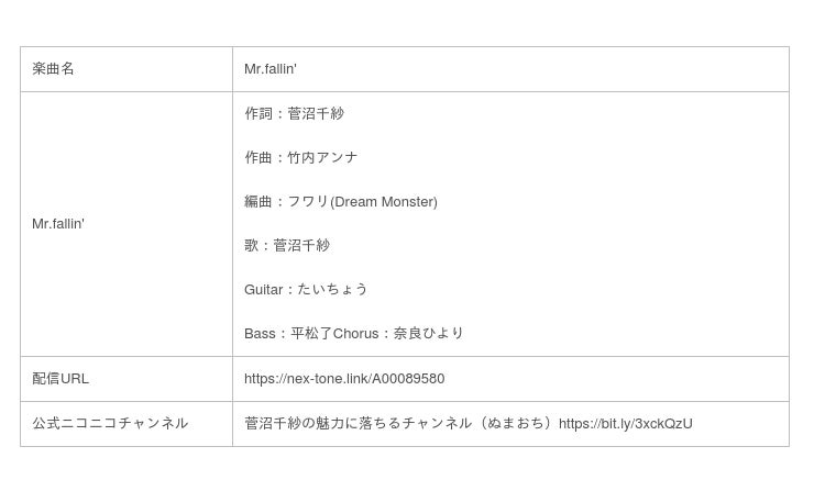 ニコニコチャンネル『菅沼千紗の魅力に落ちるチャンネル』テーマソング「Mr.fallin’」が音楽配信サイトで