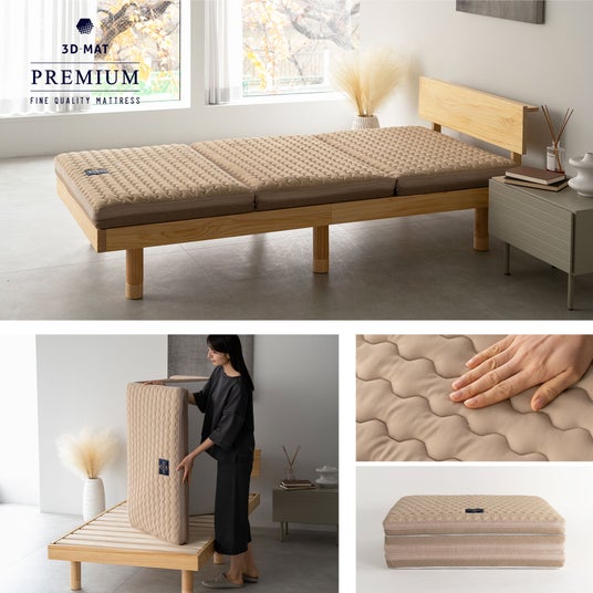 従来モデルより厚みを持たせた9cm構造で、底付き感を軽減。適度な反発力とクッション性をバランスよく備え、上位モデルにふさわしいプレミアムな寝心地を実現しました。また、三つ折りタイプのため、収納や移動がラクラク。和式布団としても、ベッドフレームでも使える万能設計です。毎日お布団を上げ下ろしする方にもおすすめです。