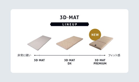 そして、今回発売する第三弾の3D-MAT プレミアムでは、さらにインナーにベッドパッドを内蔵し、フィット感と寝心地が格段に進化。