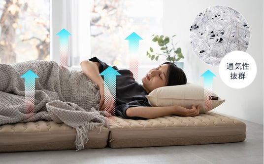通気性に優れた3D構造体が、睡眠中にこもりやすい余分な熱湿気を効率よく逃がし、ムレを防止。